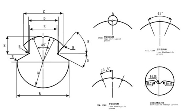 D-(沟)槽底间距 Bi-groove distance; H-上斜角Up angle;